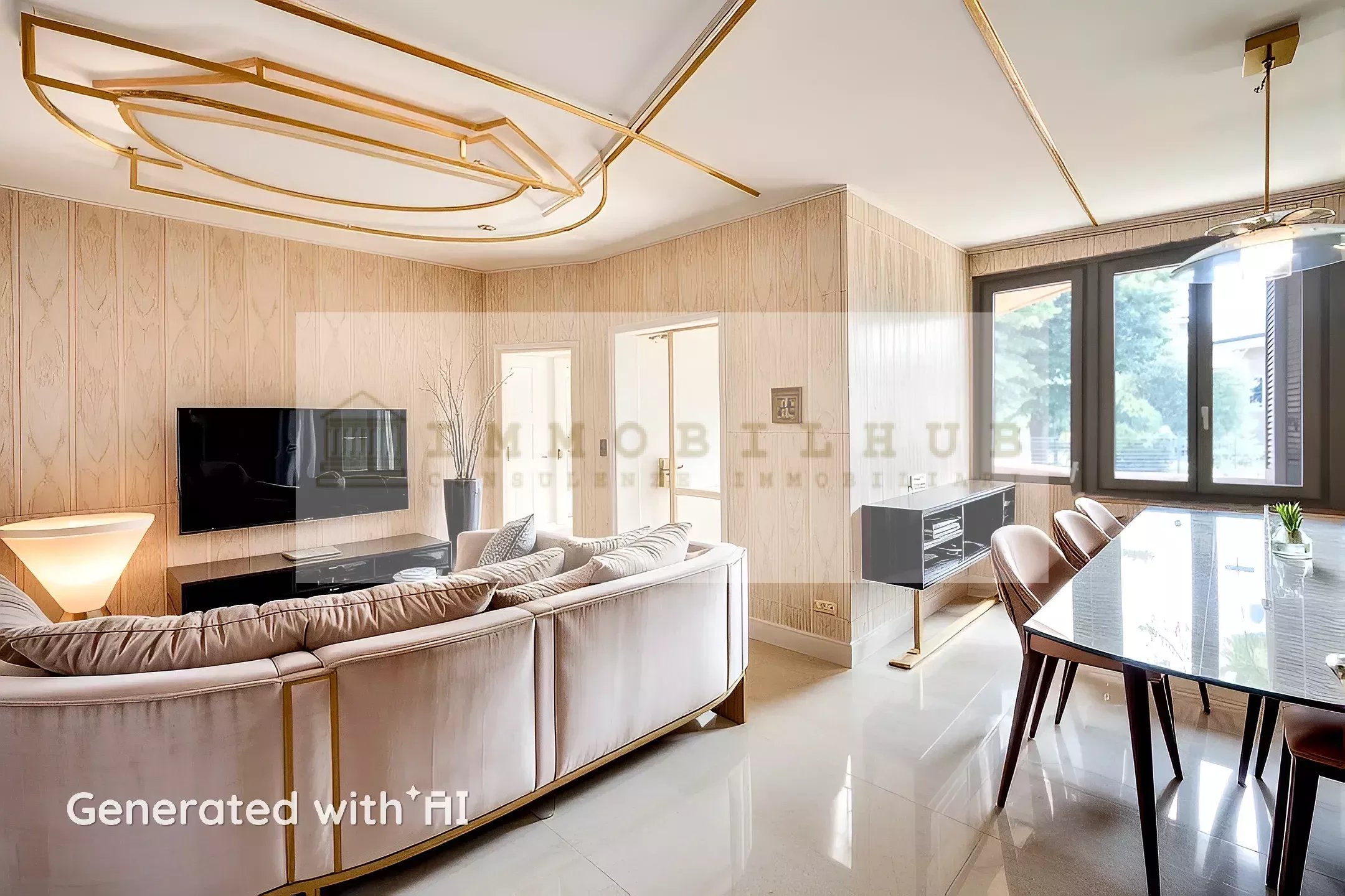 L’appartamento è situato al piano terra di un elegante stabile risalente agli anni ’80 senza ascensore, costantemente manutenuto nel tempo, con ampie aree verdi comuni sempre ben curate; la posizione della soluzione, posta nel corpo centrale del contesto e quindi lontana dalla strada principale, garantisce privacy e tranquillità ad ogni ora del giorno.