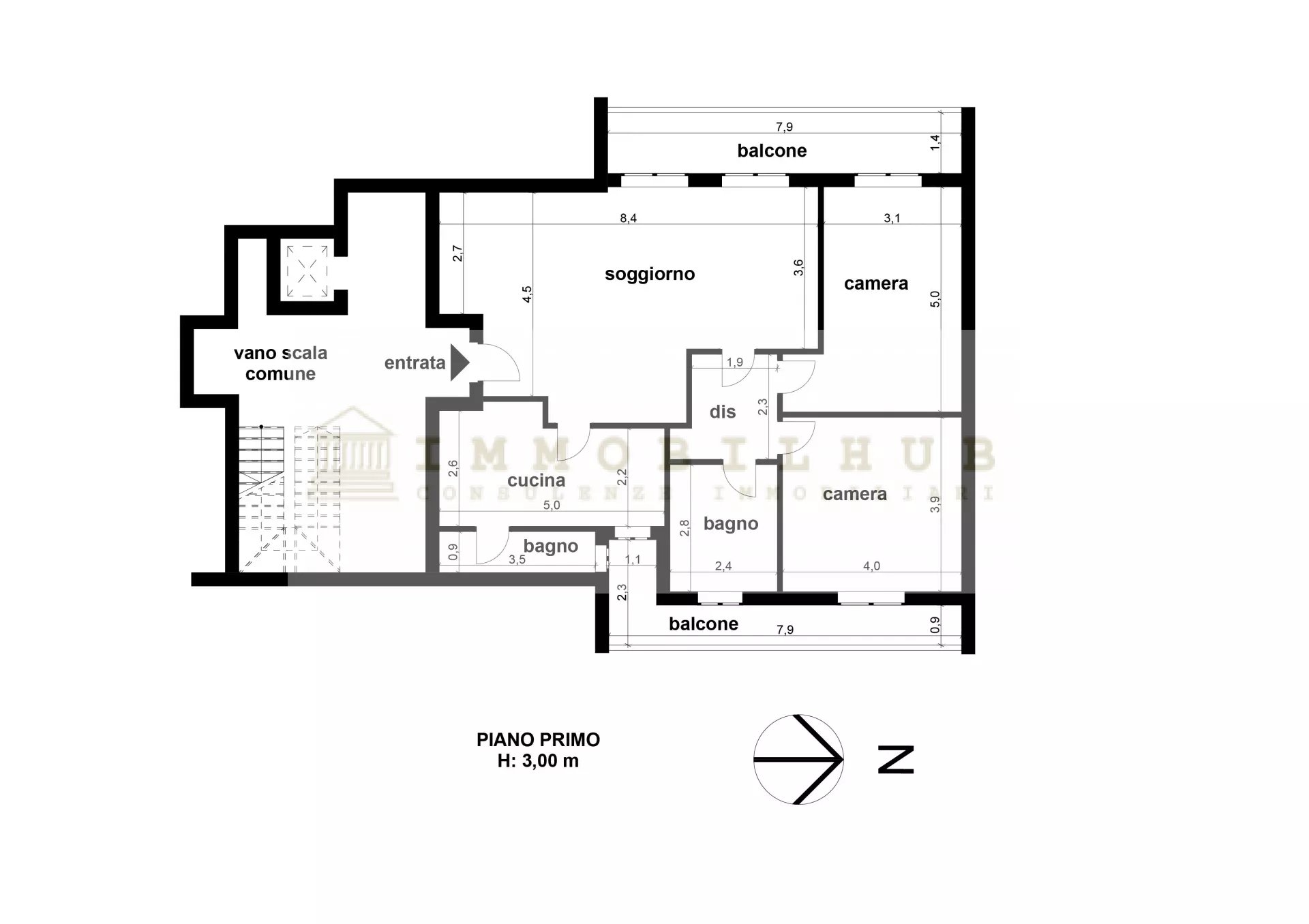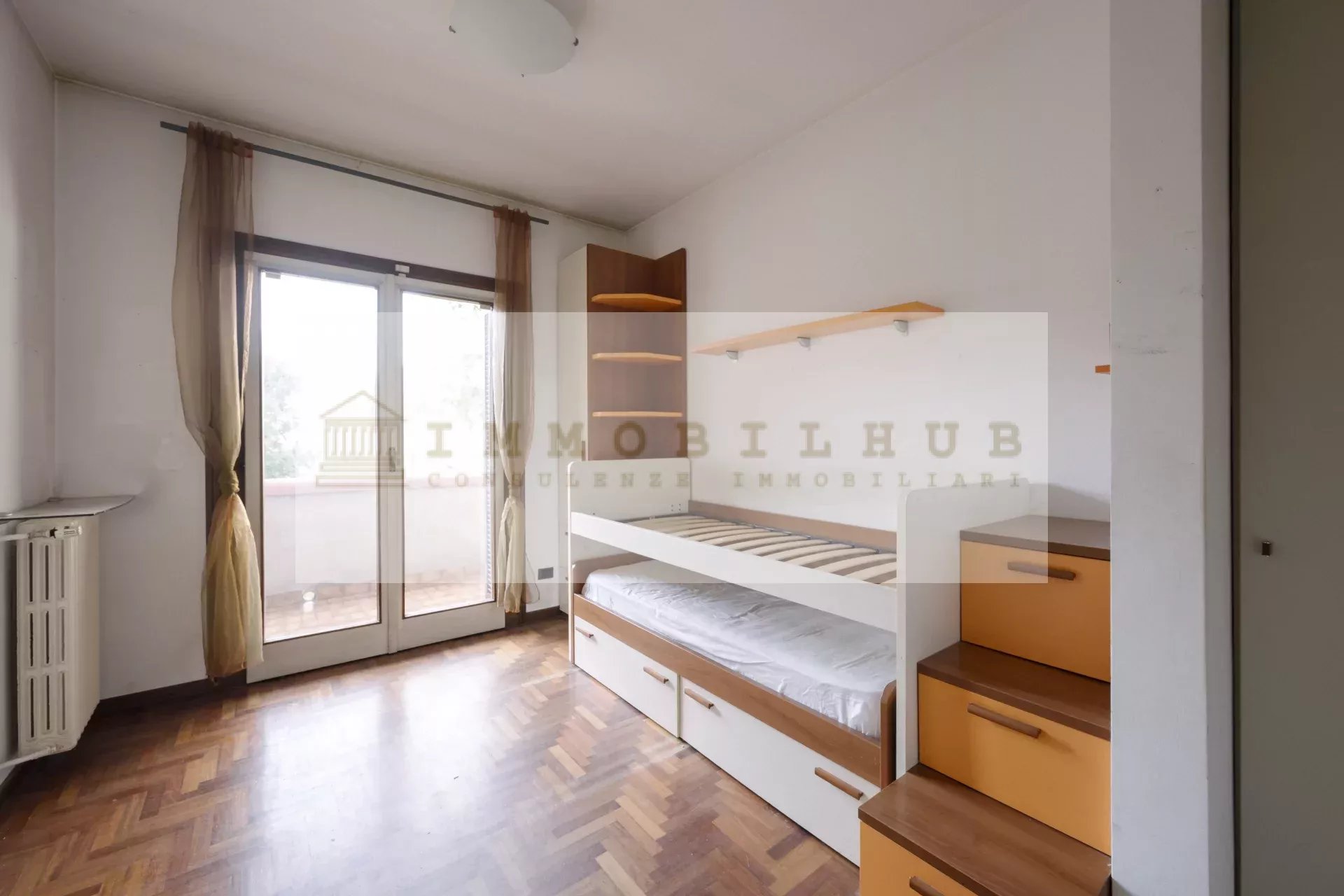 Entrando ci accoglie l’ampio soggiorno, molto luminoso, con accesso al primo balcone, perfetto per momenti di relax all’aperto. La cucina è abitabile e collegata al bagno di servizio finestrato. Proseguendo, troviamo la zona notte com-posta da due camere di generose metrature: una matrimoniale con balcone (condiviso con la cucina) e una cameretta collegata al balcone del soggiorno. Completa la zona il bagno padronale finestrato, dotato di vasca.